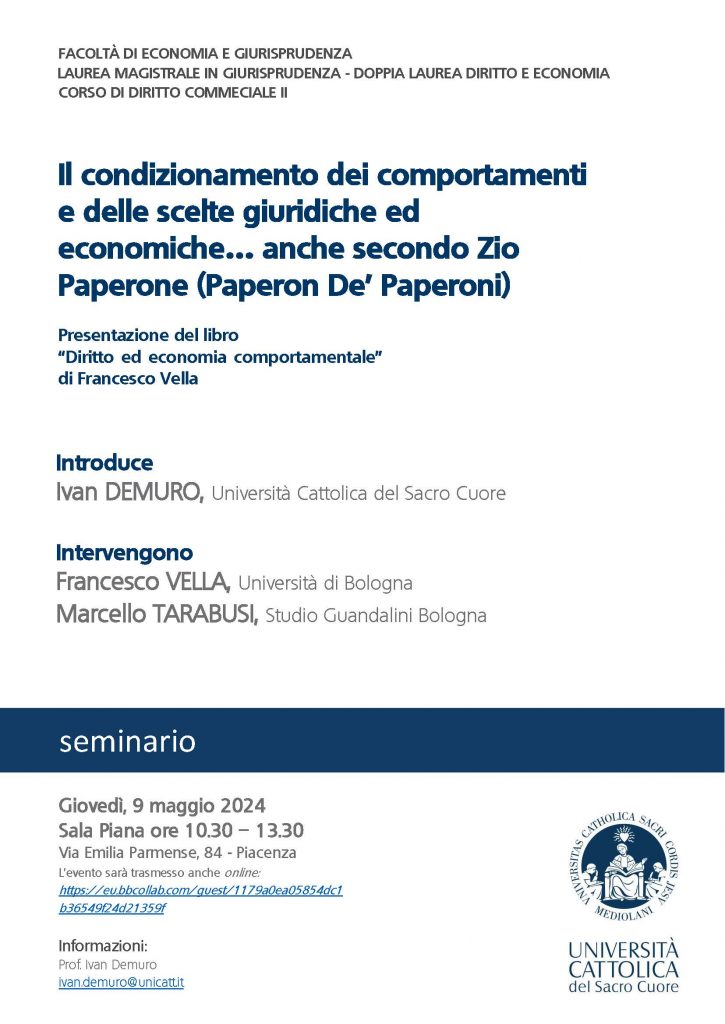 Seminario – Il condizionamento dei comportamenti e delle scelte giuridiche ed economiche… anche secondo Zio Paperone (Paperon De’ Paperoni)